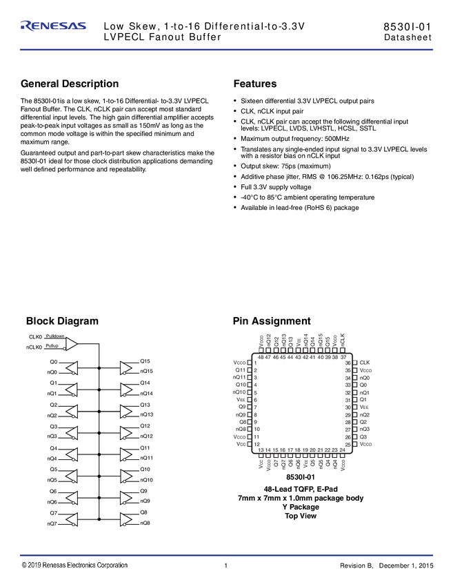 Low Skew,1-to-16,Differential-to-3.3VLVPECL Fanout Buffer