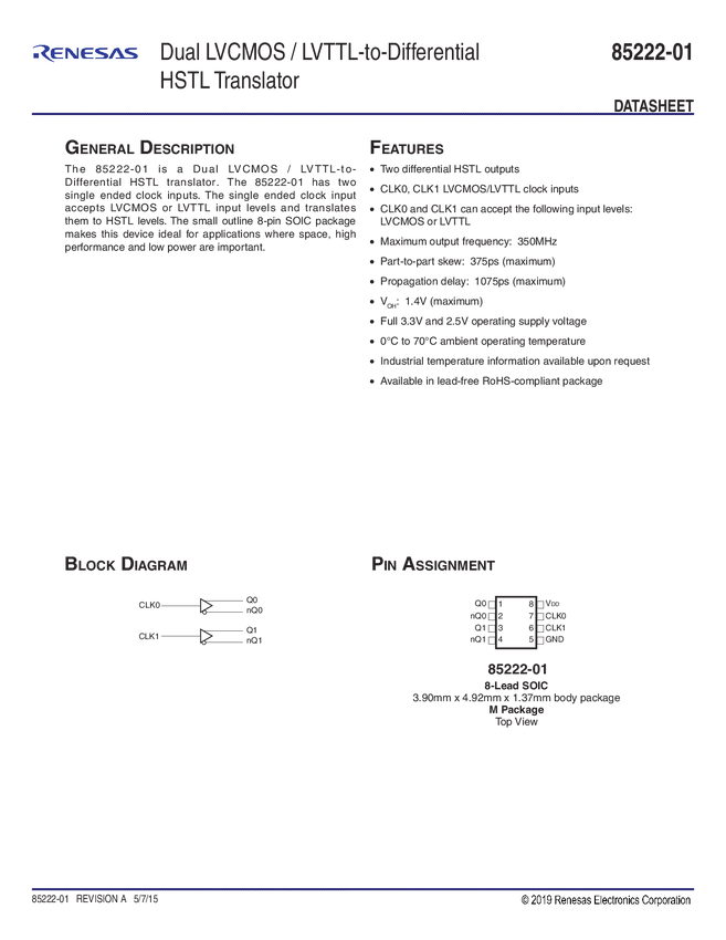 Low Skew,1-to-5 Differential-to- LVDS,LVPECL Fanout Buffer