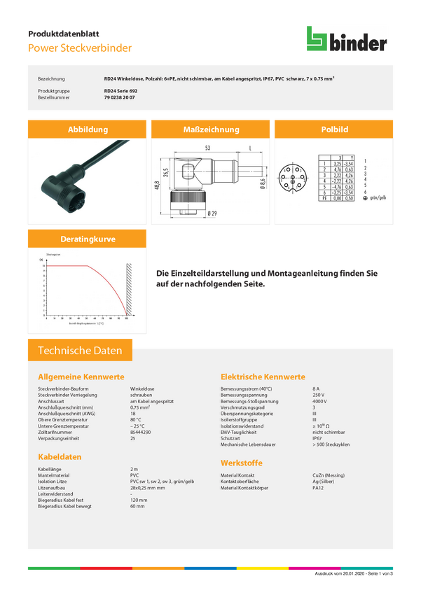Standardowe okrągłe złącza wtykowe serii 692 binder 79-0238-20-07, 20 szt.