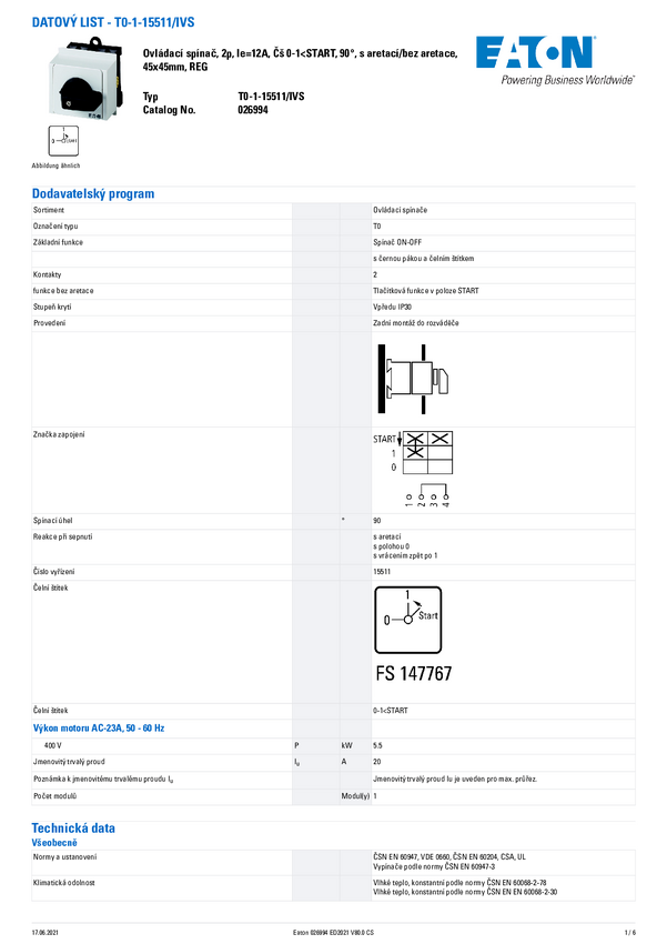 Eaton 026994 T0-1-15511/IVS Przycisk ON/OFF 1 szt.