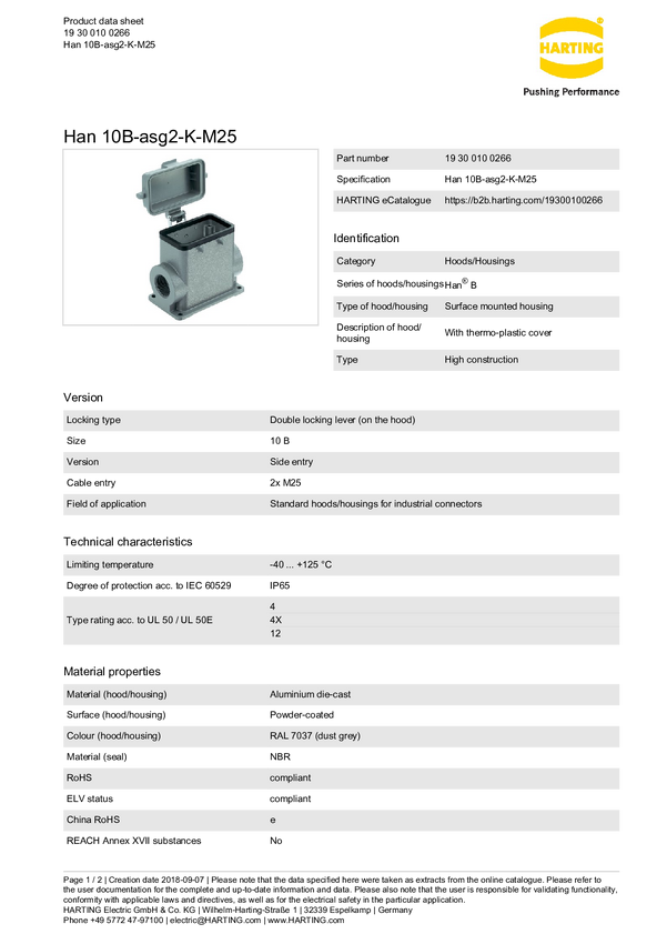 Obudowa podstawowa 19 30 010 0266 Harting 1 szt.