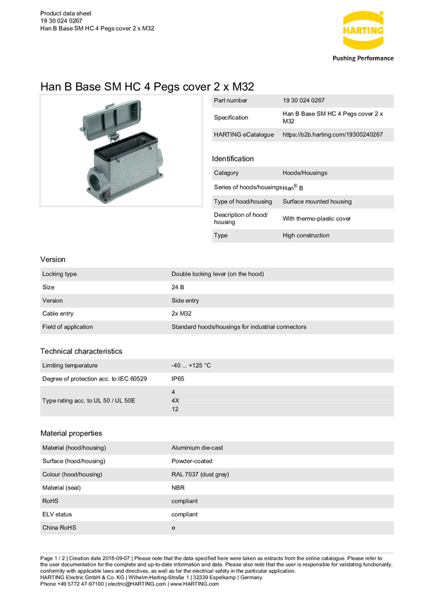 Obudowa podstawowa 19 30 024 0267 Harting 1 szt.