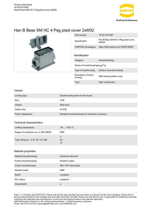 Obudowa podstawowa 19 30 016 0267 Harting 1 szt.