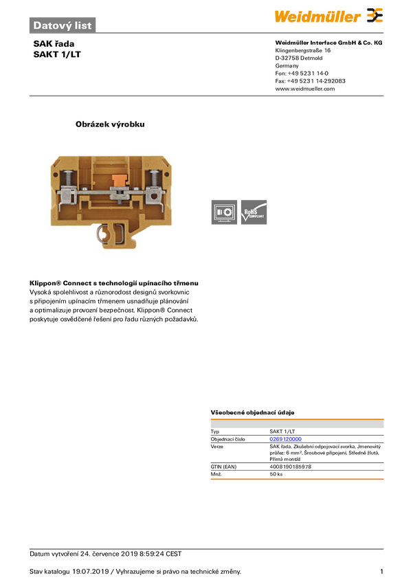 Seria SAK, Złączka rozłączająca, Przekrój pomiarowy: 6 mm², złącze śrubowe, Jasnożółty, montaż bezpośredni SAKT 1/LT 026