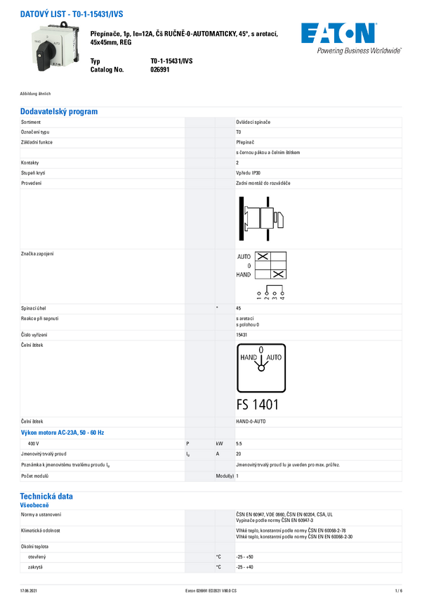 Eaton 026991 T0-1-15431/IVS Wyłącznik 1 szt.