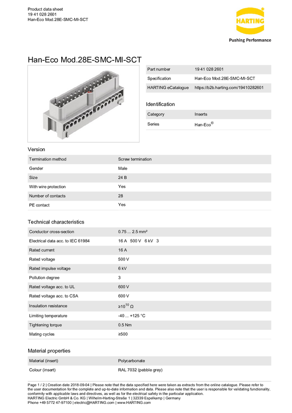 Złącze przemysłowe 19 41 028 2601 Harting Zawartość: 1 szt.