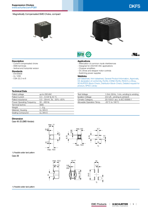 Choke, Magnetically Compensated, Compact, DKFP Series, 1.8mH, 1E Case