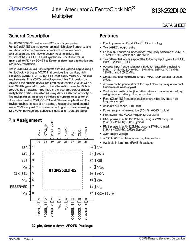 VCXO Jitter Attenuator & FemtoClock® Multiplier