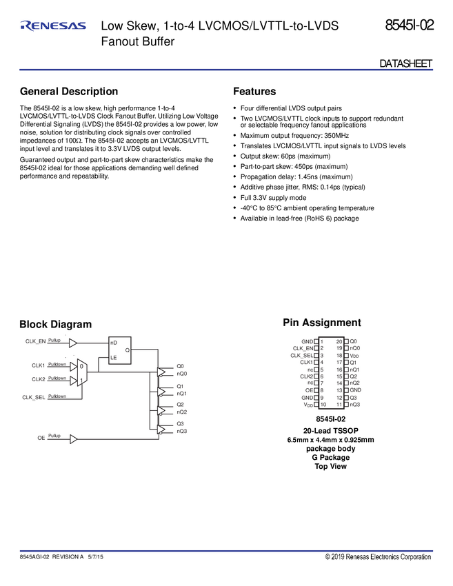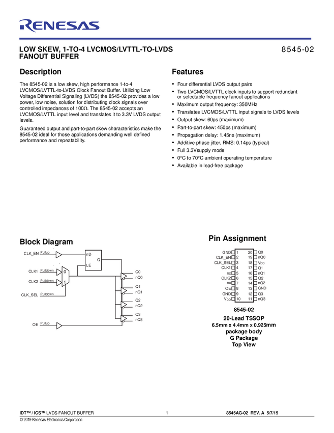 Low Skew,1-to-4 LVCMOS/LVTTL-to-LVDS Fanout Buffer