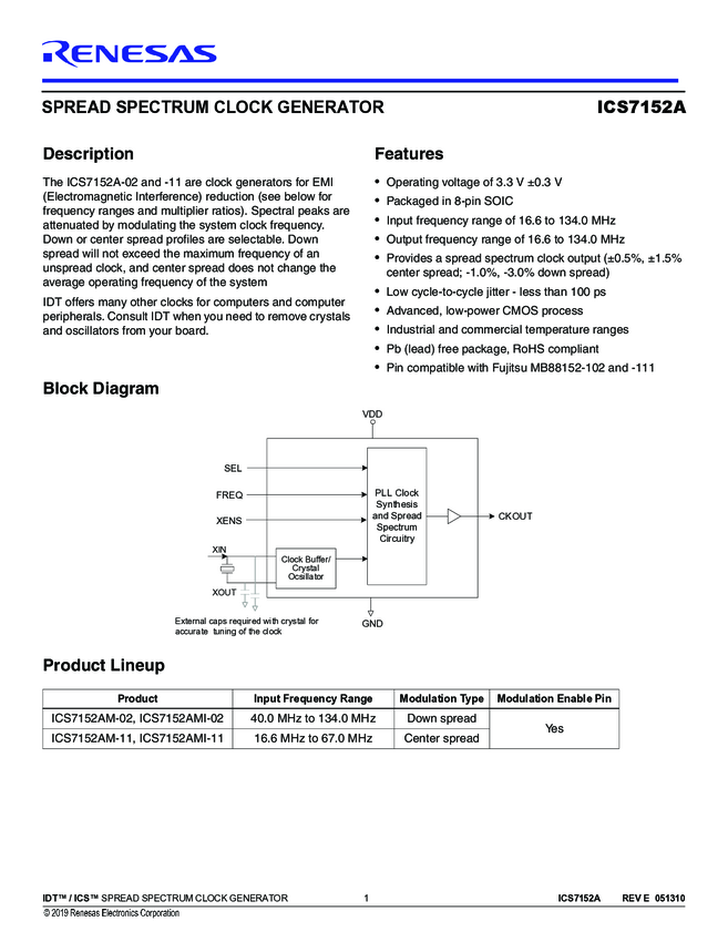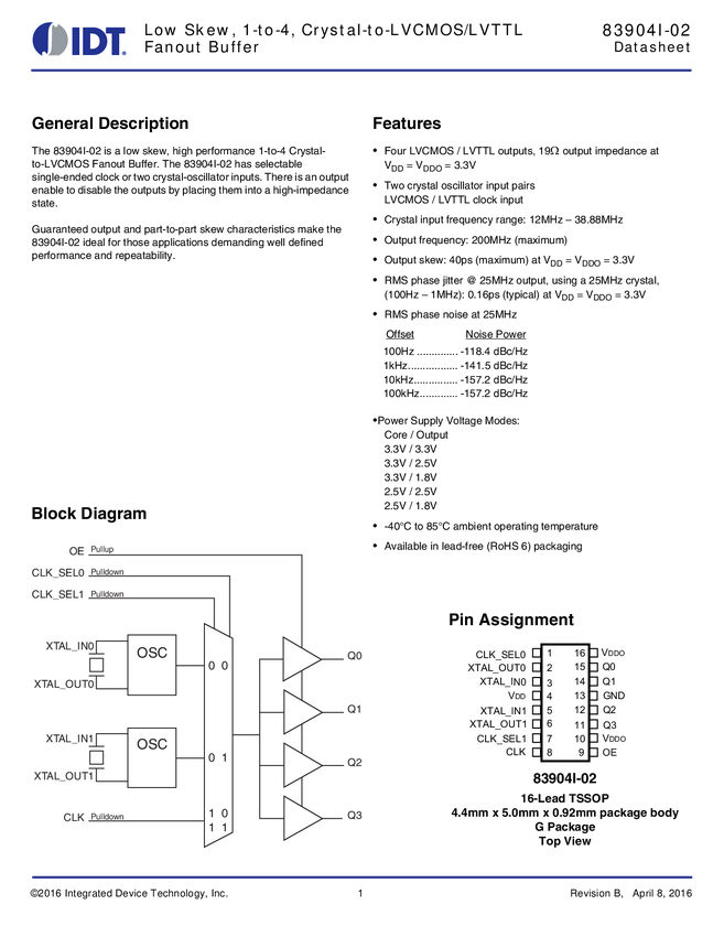 Low Skew,1-to-4,Crystal-to-LVCMOS/LVTTL Fanout Buffer