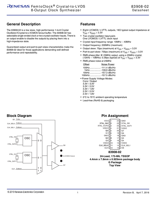 Low Skew,1-to-8 Crystal-to-LVCMOS Fanout Buffer