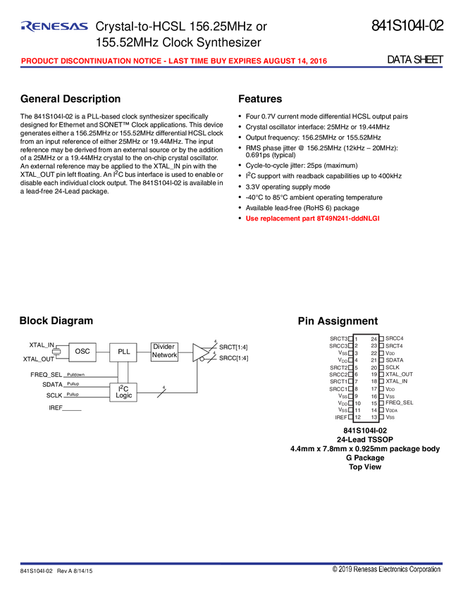 Crystal-to-HCSL 156.25MHz or 155.52MHz Clock Synthesizer