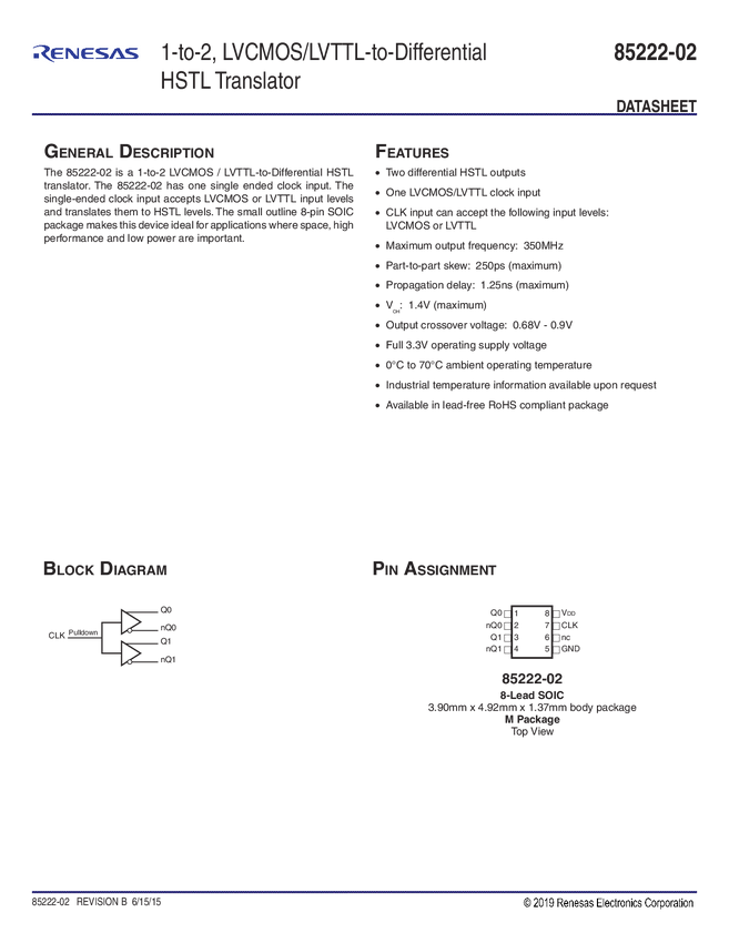 Low-Skew, 1-to-2 LVCMOS/LVTTL-to-HSTL Fanout Buffer