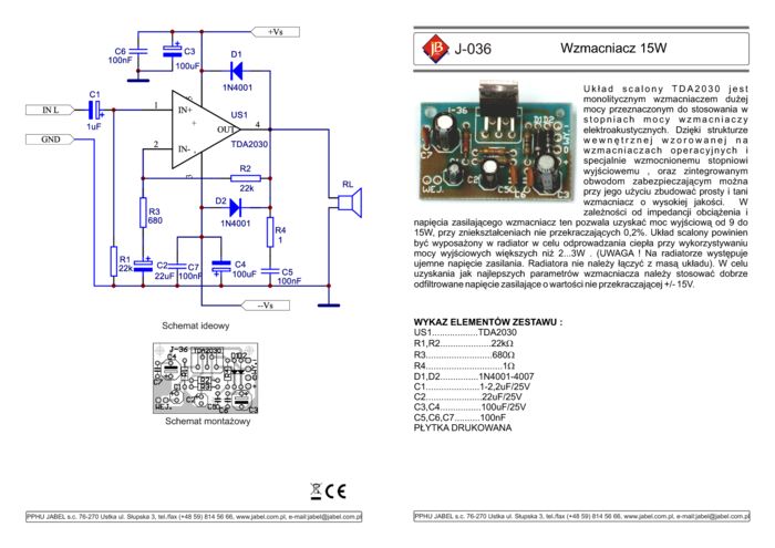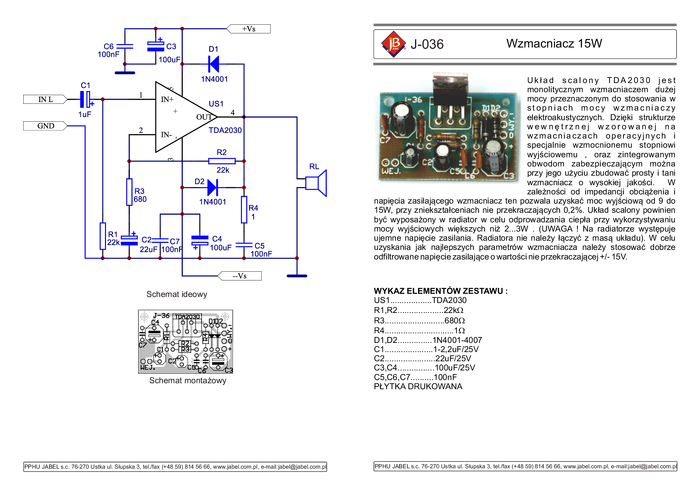 J-036 Wzmacniacz mocy 15W - zestaw do montażu