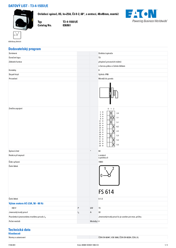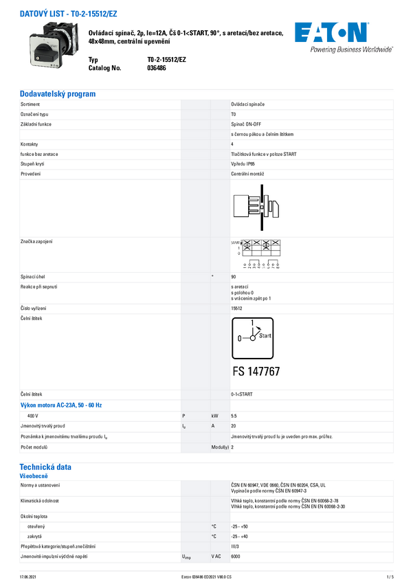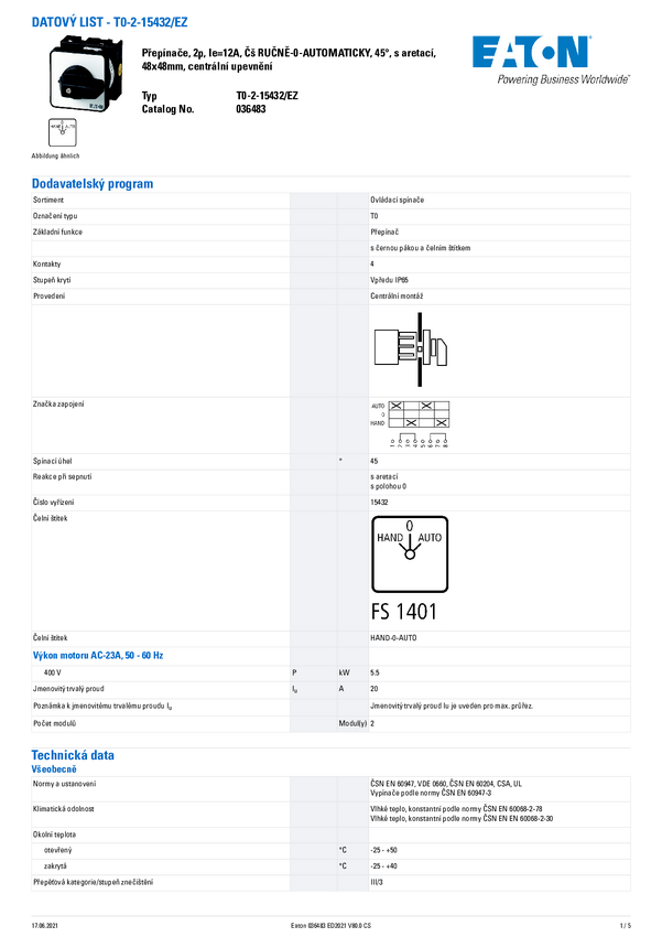 Eaton 036483 T0-2-15432/EZ Wyłącznik 1 szt.