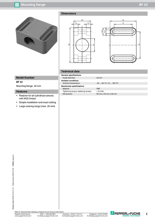 Akcesorium montażowe Pepperl+Fuchs BF 22 Flansc 036869 5 szt.