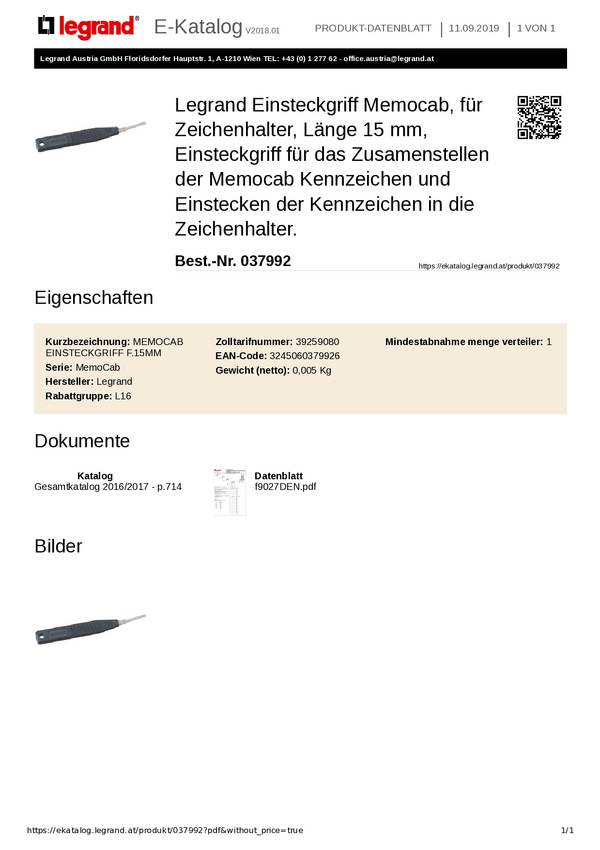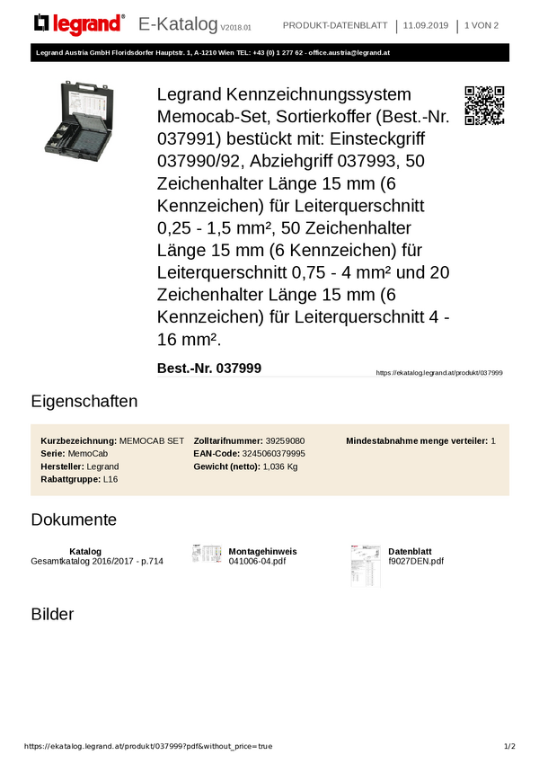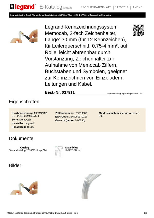 Legrand 037991 Legrand 037991 Zestaw oznaczników kablowych 1 szt.