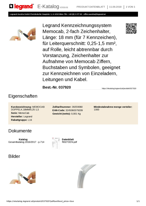 Uchwyt identyfikatora Legrand Legrand 037920 037920, 1000 szt.