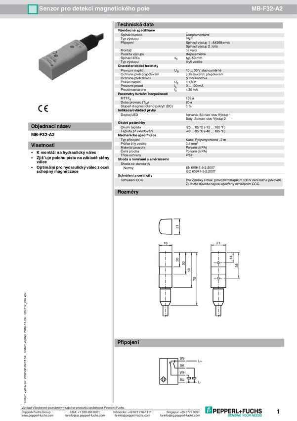 Czujnik pola magnetycznego Pepperl+Fuchs MB-F32-A2 037712 1 szt.