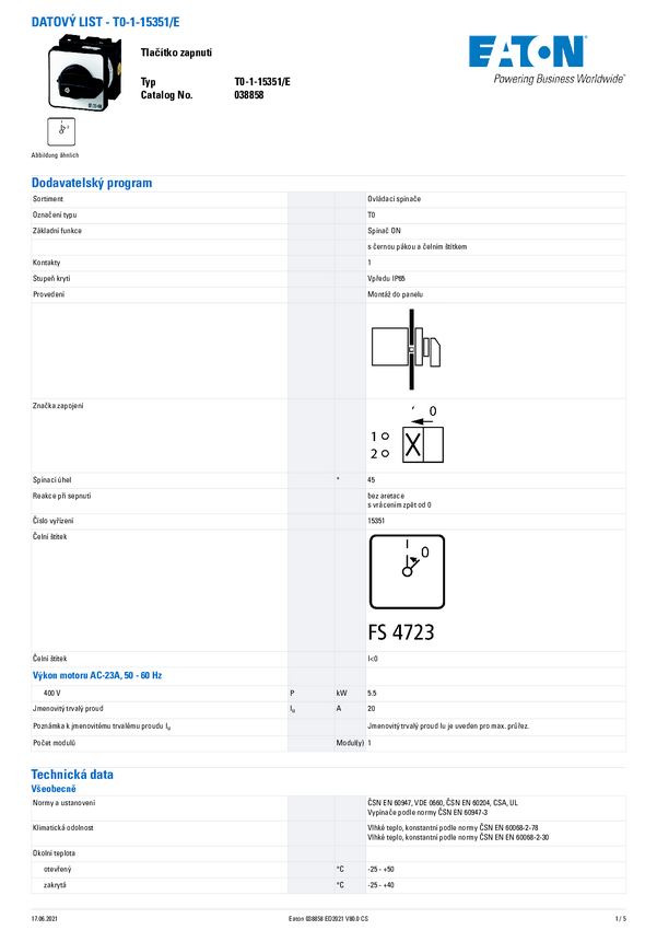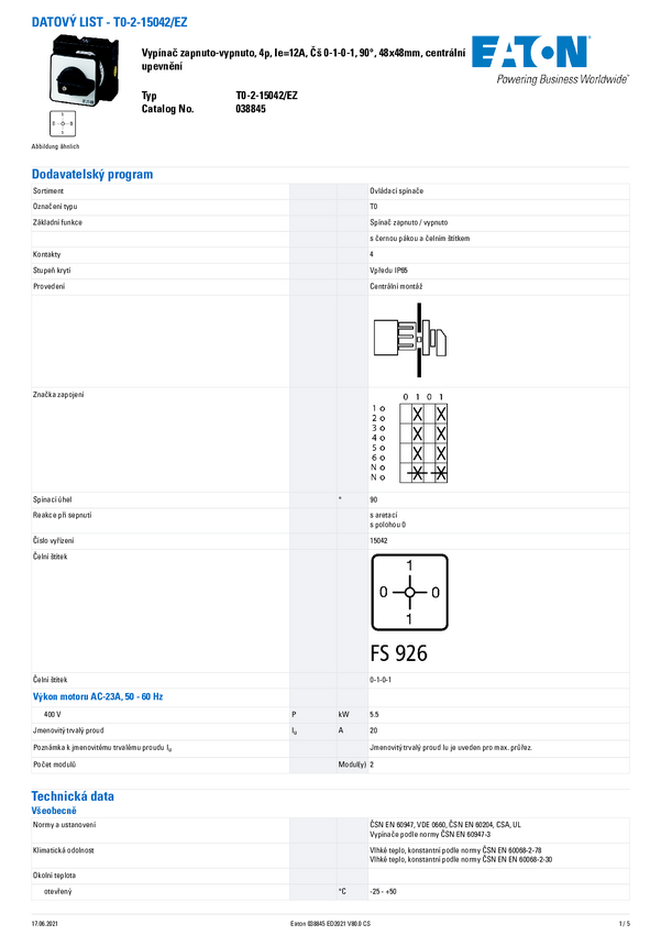 Eaton 038845 T0-2-15042/EZ Przełącznik ON/OFF 1 szt.