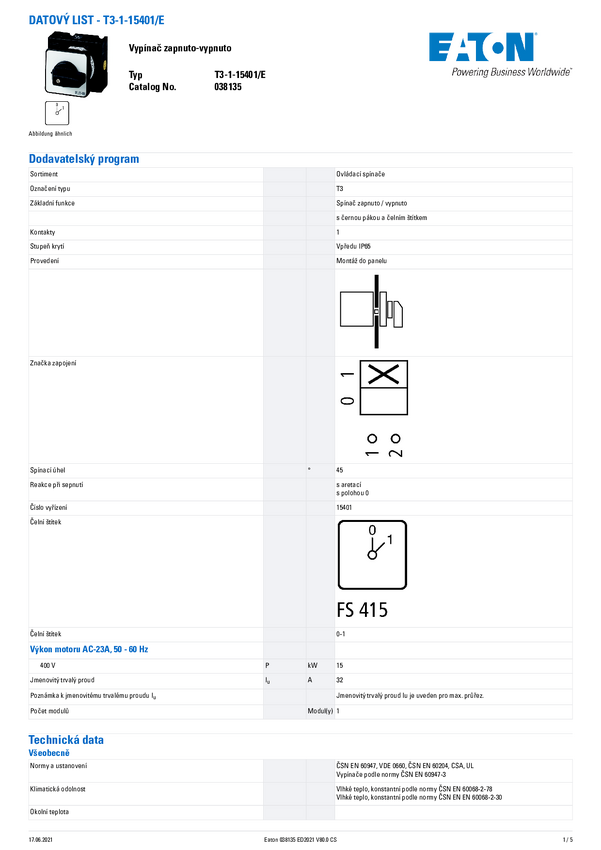 Eaton 038135 T3-1-15401/E Przełącznik ON/OFF 1 szt.