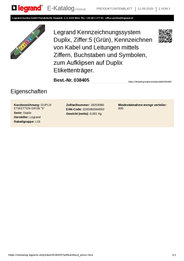 Legrand Legrand 038405 Oznacznik kablowy Nadruk 5 038405