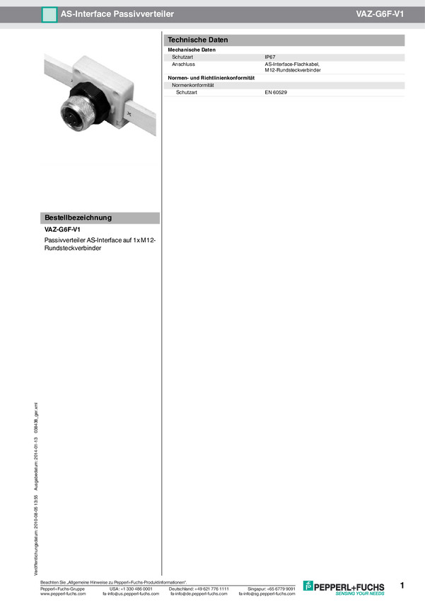 Rozdzielacz czujnik / element wykonawczy, pasywny Pepperl+Fuchs VAZ-G6F-V1 038438 1 szt.