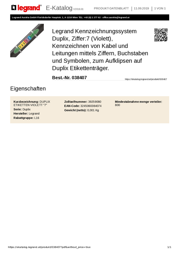 Legrand Legrand 038413 Oznacznik kablowy Nadruk D 038413