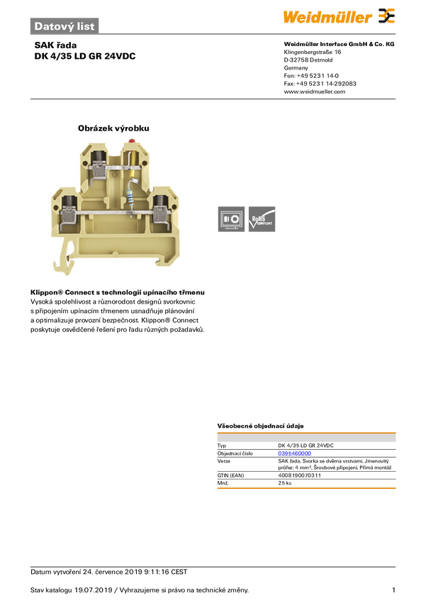 Złączka szynowa przelotowa Weidmüller 0395460000 śrubowe 25 szt.