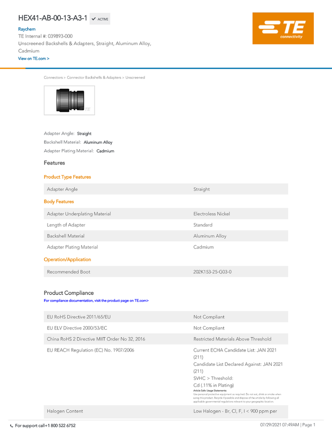 TE Connectivity 039893-000 TE RAY Hexashield Products, 1 szt.