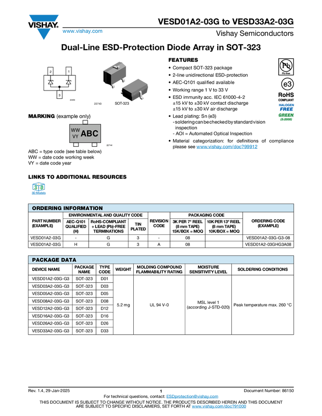 Dual-Line ESD-Protection Diode Array in SOT-323