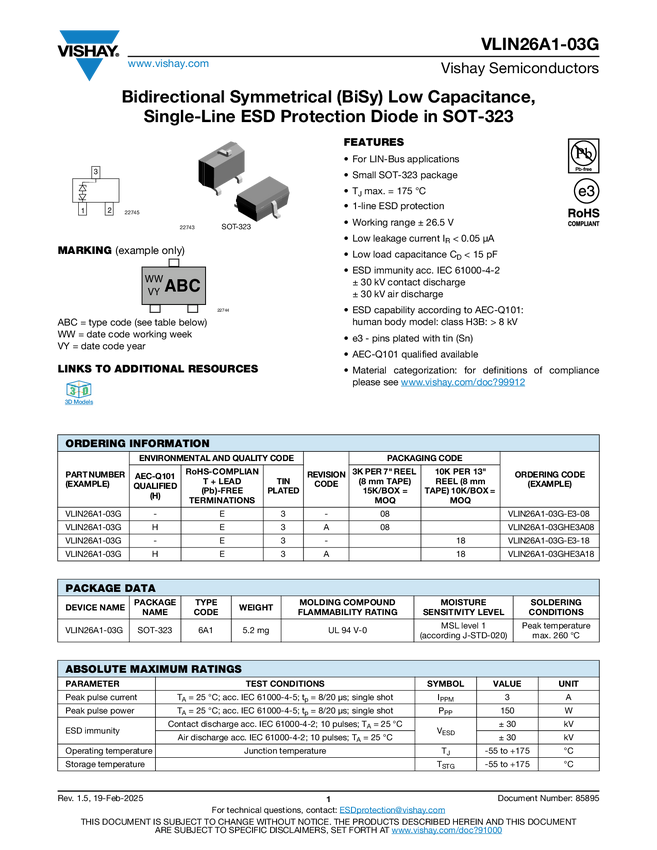 Bidirectional Symmetrical (BiSy) Low Capacitance, Single-Line ESD Protection Diode in SOT-323