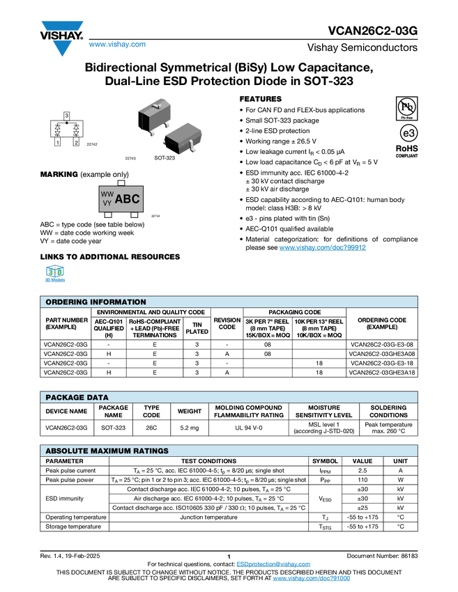 Bidirectional Symmetrical (BiSy) Low Capacitance, Dual-Line ESD Protection Diode in SOT-323