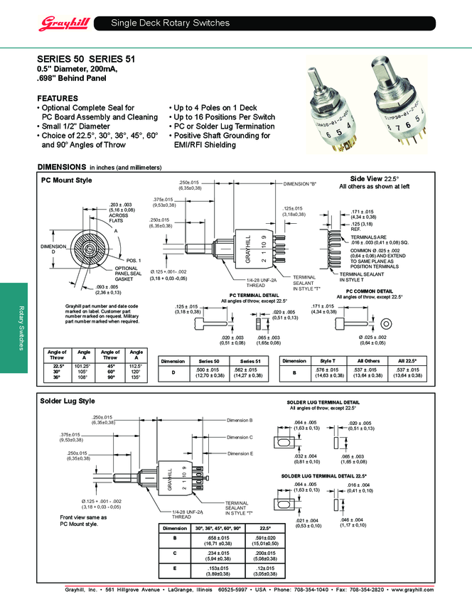 Switch Rotary SP Flatted Shaft Solder Lug 1A 115VAC 115VDC