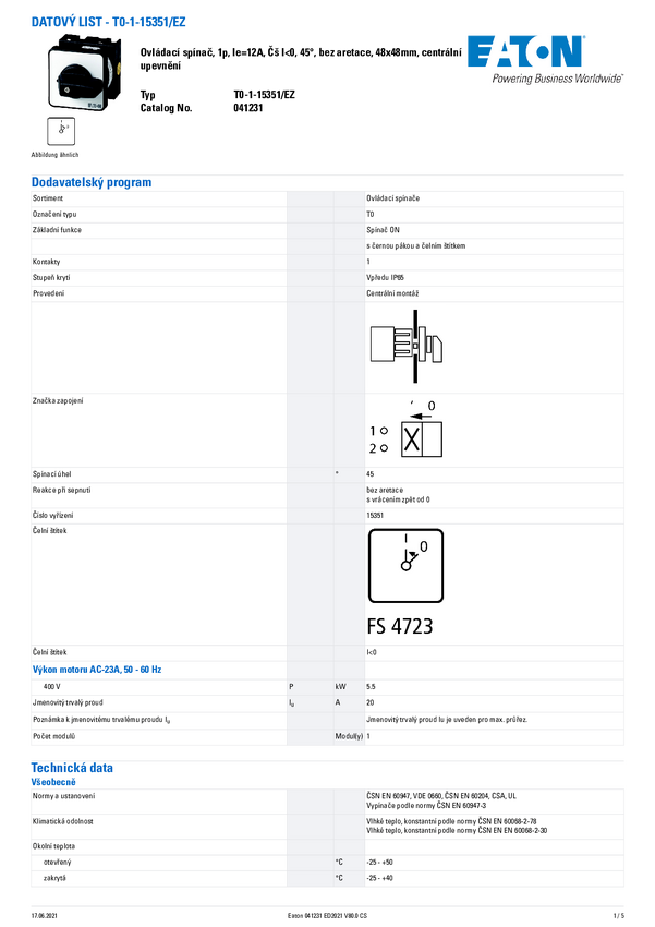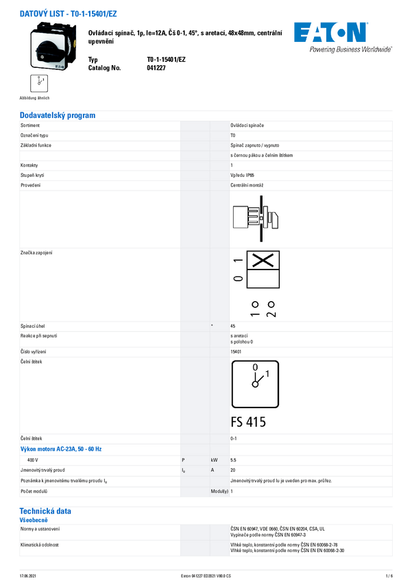 Eaton 041229 T0-2-15432/IVS Wyłącznik 1 szt.