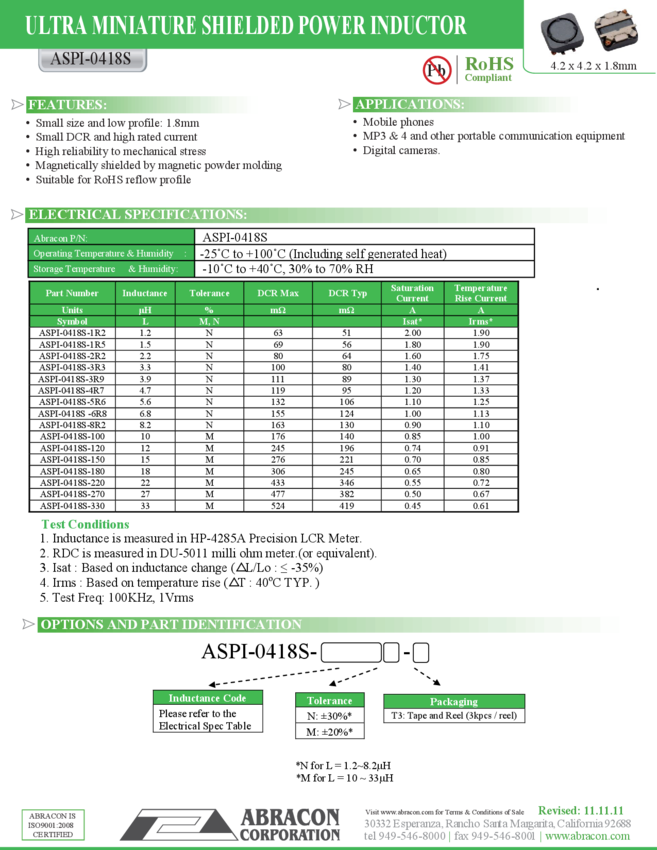 Ind Power Chip Shielded Wirewound 22uH 20% 100KHz Ferrite 900mA 1616 T/R