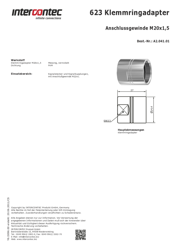 Intercontec A2.041.01 Adapter pierścienia zaciskowego 1 szt.