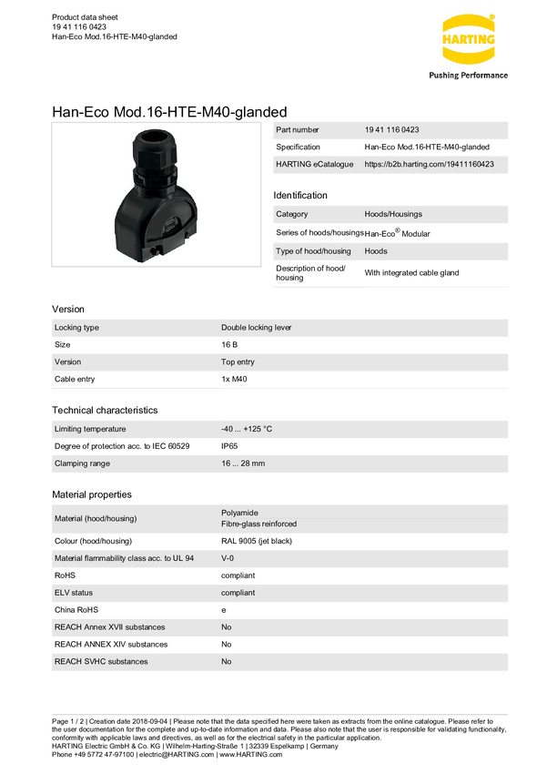 Obudowa tulejki 19 41 116 0423 Harting 1 szt.