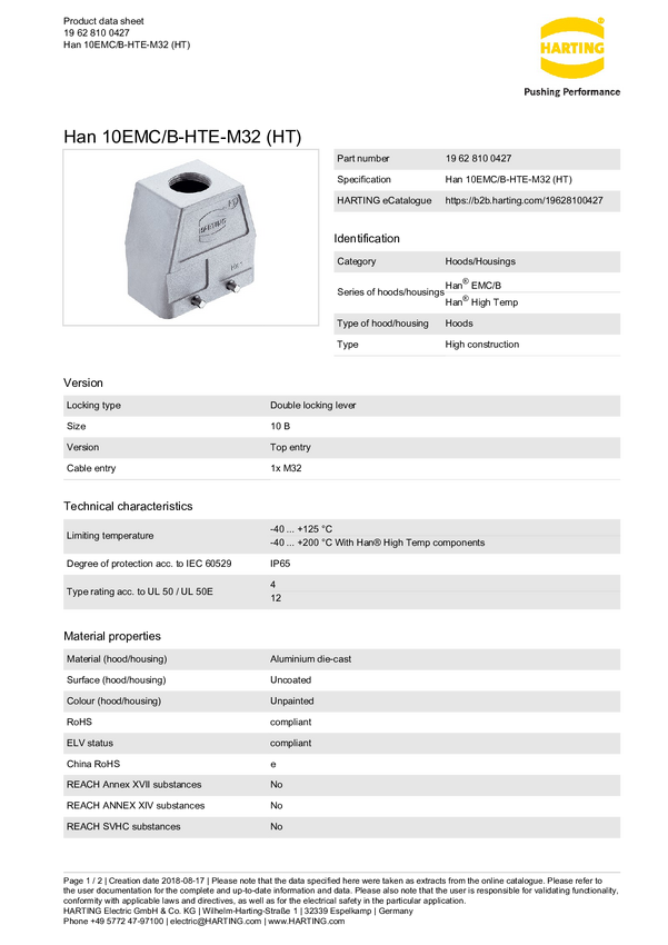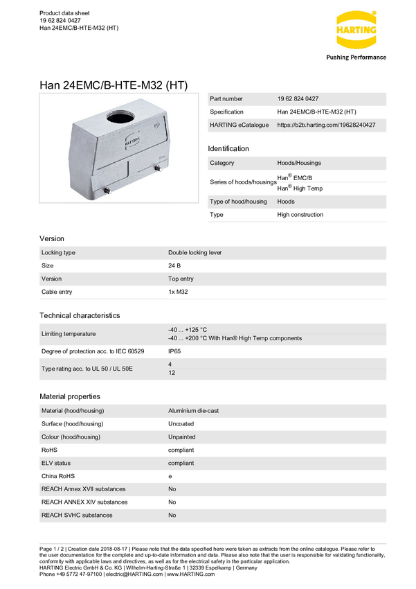 Obudowa tulejki 19 62 810 0426 Harting 1 szt.