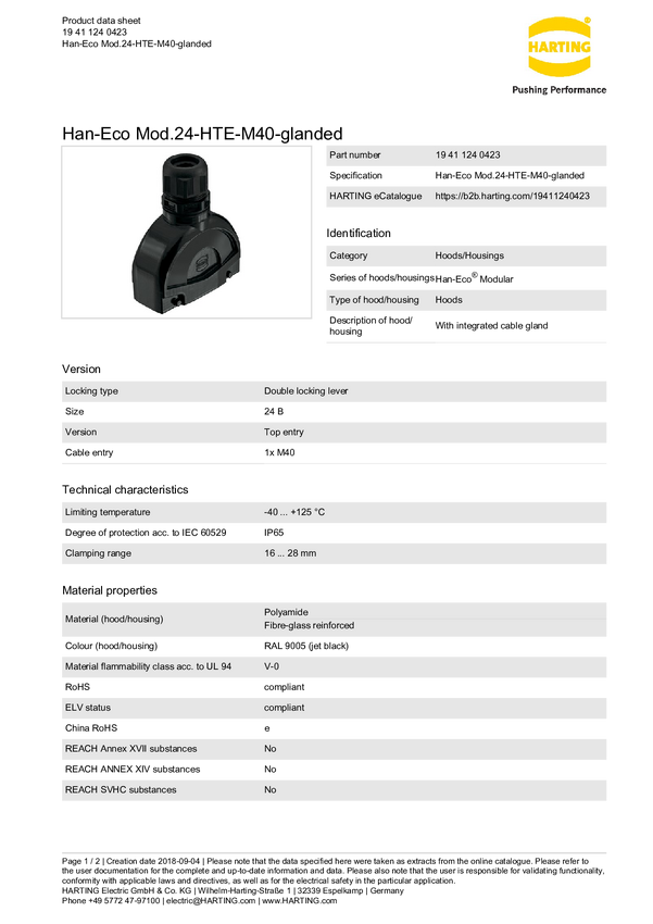 Obudowa tulejki 19 41 124 0423 Harting 1 szt.