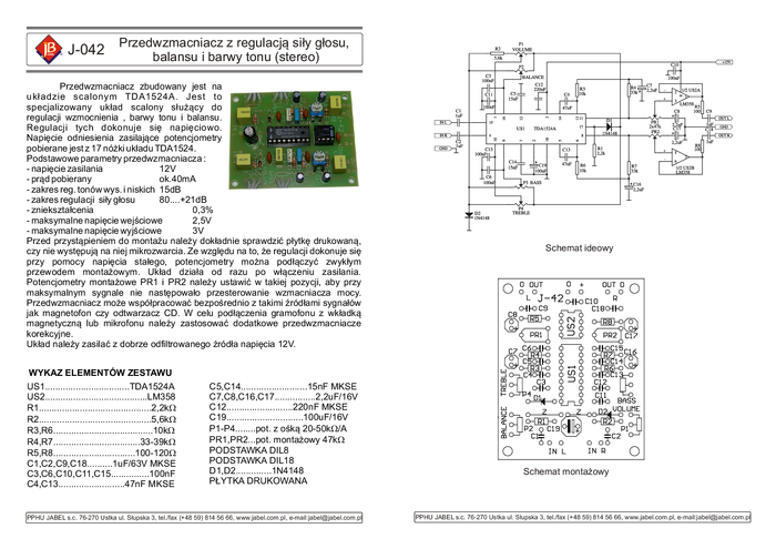 J-042 Przedwzmacniacz z regulacją siły głosu, balansu i barwy tonu (stereo)