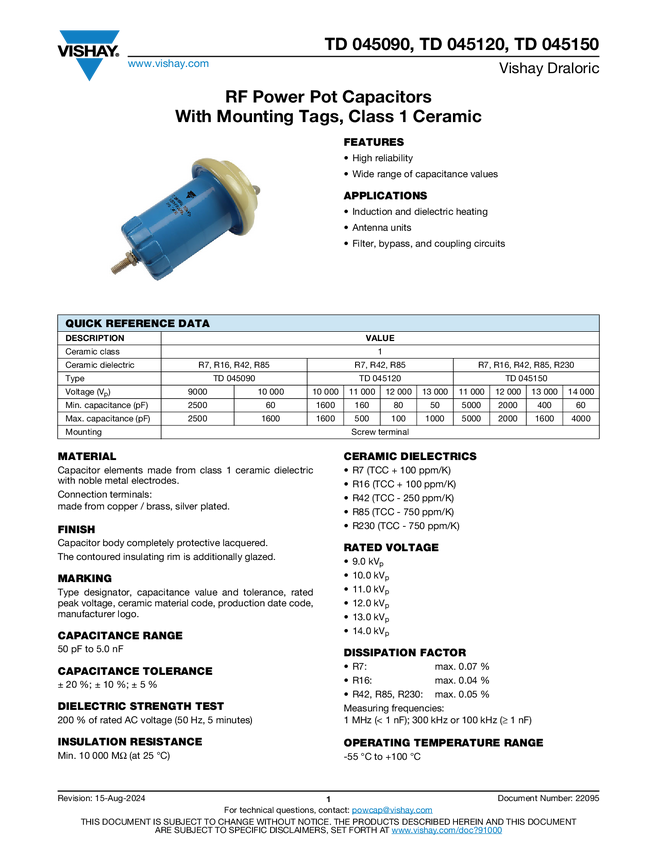 RF Power Pot Capacitors With Mounting Tags, Class 1 Ceramic