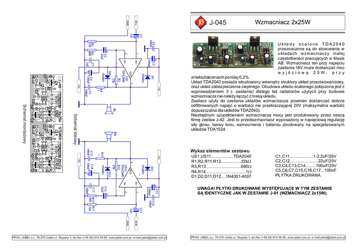 J-045 Wzmacniacz 2x25W (stereo) - zestaw do montażu