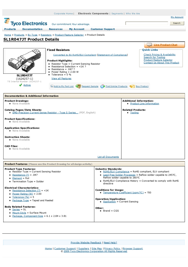 Res Wirewound 0.047 Ohm 5% 2W ±50ppm/°C Molded SMD T/R