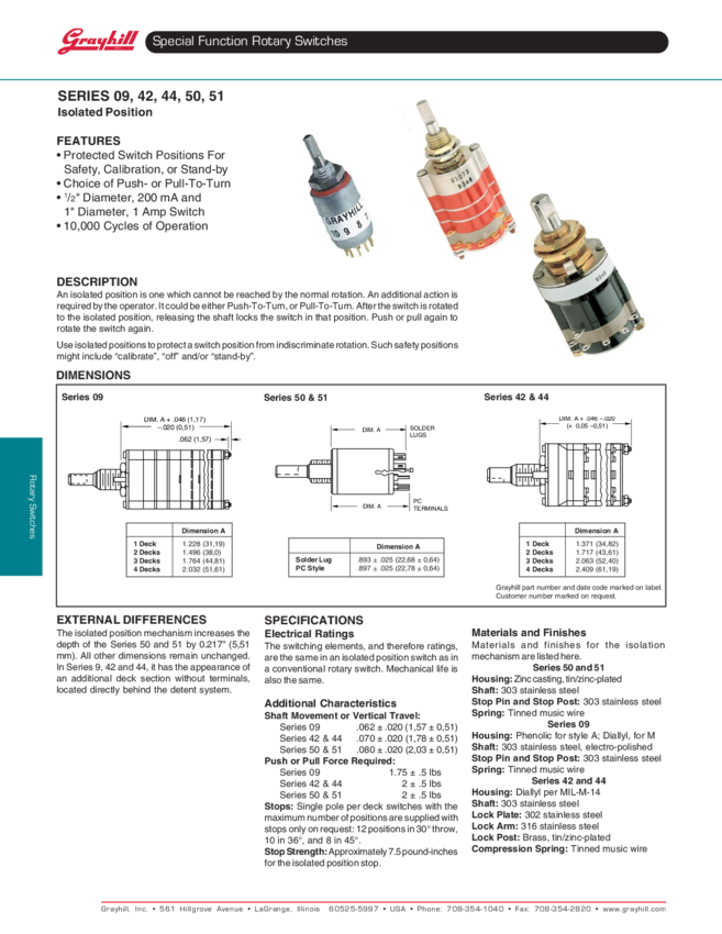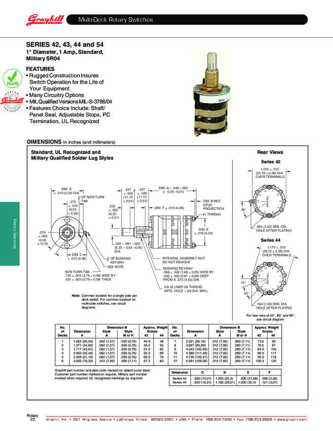 Switch Rotary SP Flatted Shaft Solder Lug 1A 115VAC 115VDC