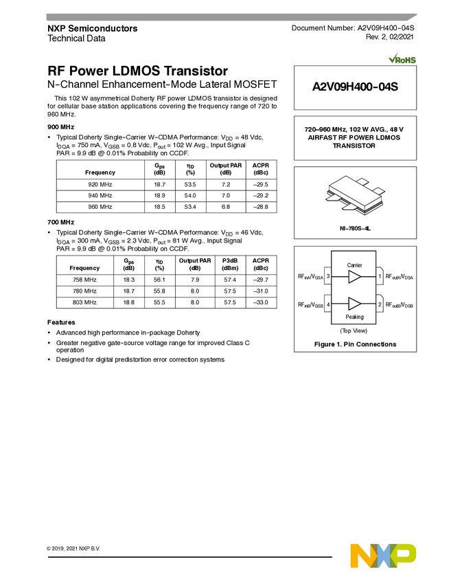 Airfast RF Power LDMOS Transistor, 720-960 MHz, 102 W Avg., 48 V