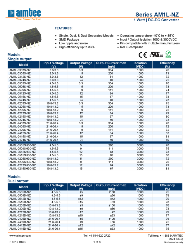 Module DC-DC 1-OUT 3V 0.303A 1W 5-Pin SMD Tube