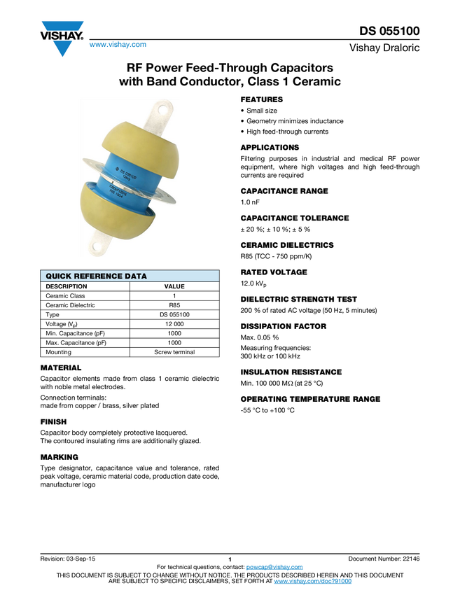 RF Power Feed-Through Capacitors with Band Conductor, Class 1 Ceramic