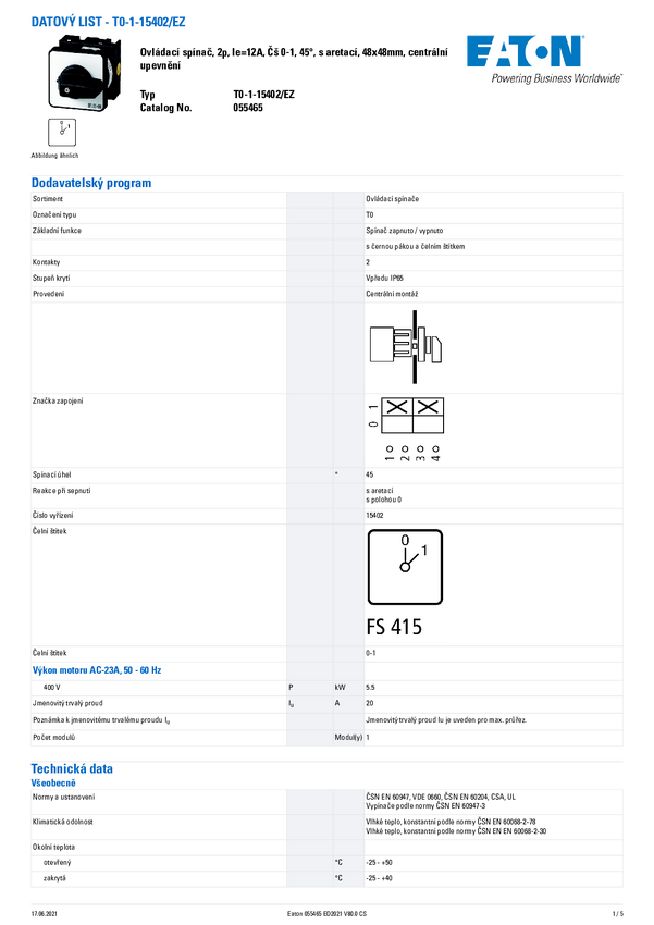 Eaton 055465 T0-1-15402/EZ Przełącznik ON/OFF 1 szt.