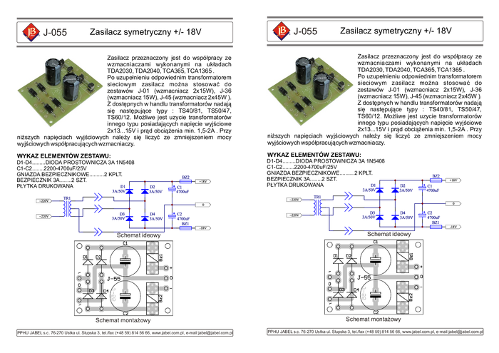 J-055 Zasilacz +/-18V - zestaw do montażu